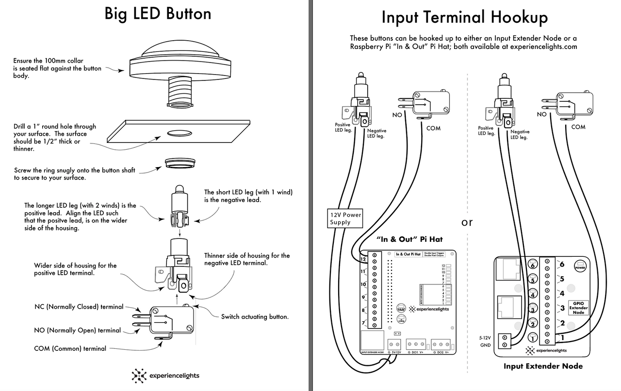 - LED illuminates with 12V DC. (5V works as well, but is dimmer)