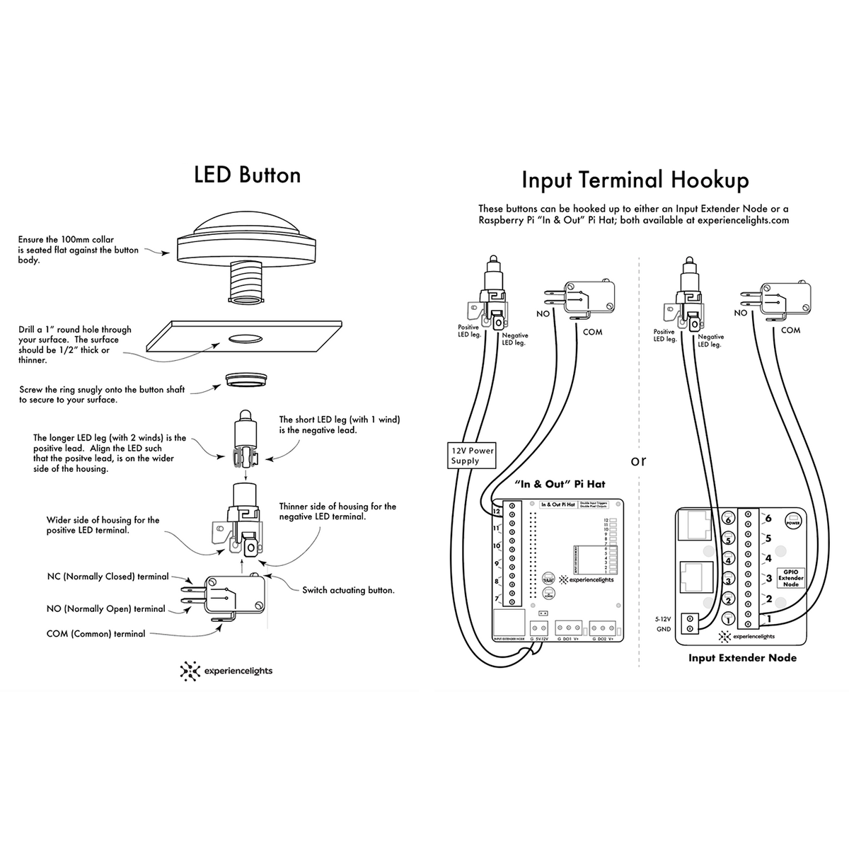 - LED illuminates with 12V DC. (5V works as well, but is dimmer)